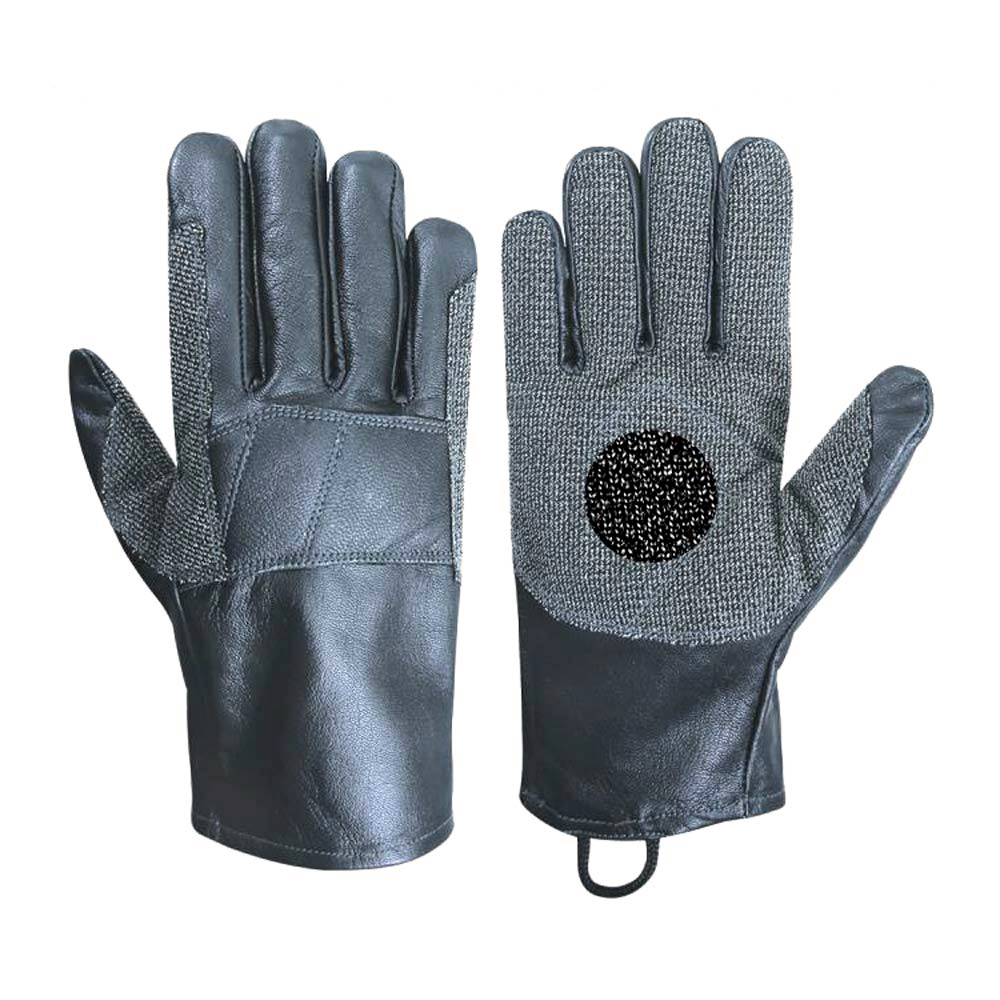 Rope Gloves Palm M/O Goatskin leather with Cut Resistance Kevlar Fabric, Inside Cut Resistance level 5 Polyethylene Fiber Glass Fabric, Back M/O Goatskin Leather with Foam Padding at Kunckle.